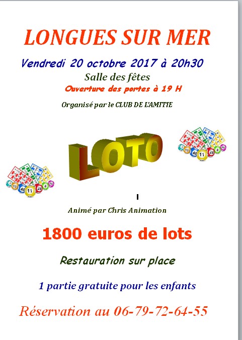 Le Club de l'Amitié organise un loto le 20 octobre 2017,