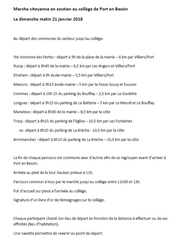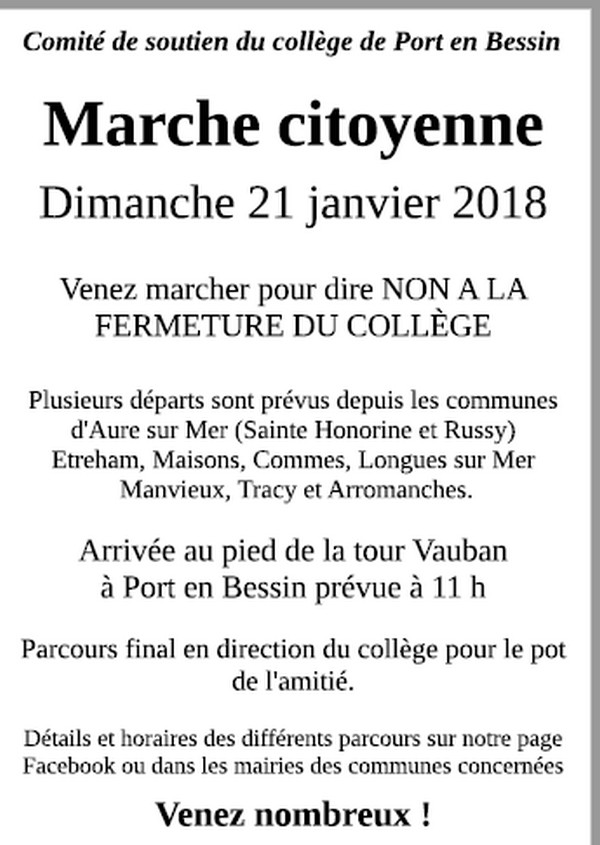 Le Comité de soutien au collège Ernest Hemingway de Port en Bessin organise une dernière manifestation publique avant le vote du Conseil Départemental.