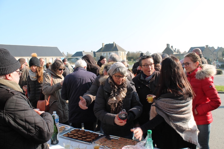 Dans son discours le Maire rappelle que la commune a racheté l‘immeuble boulangerie / épicerie / salon de coiffure pour 80000€ et rajusté les loyers à la baisse.