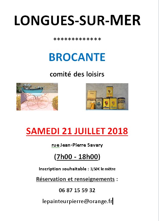 Ci-après vous trouverez l’affiche de la BROCANTE DU COMITE DES LOISIRS.