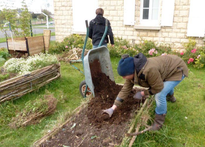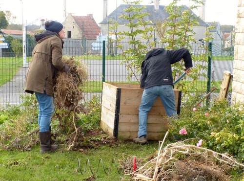 Ce samedi 3 novembre, les membres présents ont vidé le composteur afin de récupérer un compost bien frais et amender quelques bacs ainsi que quelques parcelles avant l’hiver. Ce matin, également, désherbage, plantation de fraisiers et d’heuchères récupérés dans le jardin collectif.