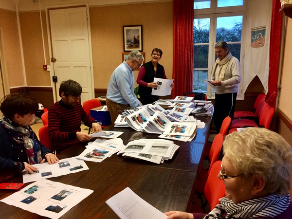 Il a été entièrement édité grâce à des bénévoles depuis la conception, la mise en page jusqu’à l’assemblage des feuillets (voir la photo ci-après).
