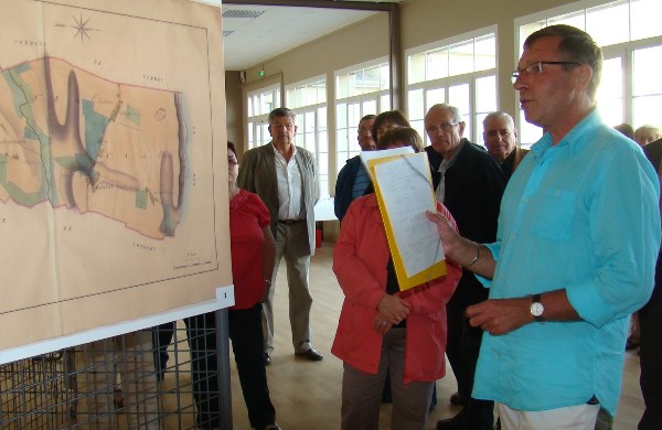 Lors de l’exposition éphémère « 150 ans de vie commune, Fontenailles-Longues-Marigny » dans la salle des fêtes de Longues-sur-Mer.