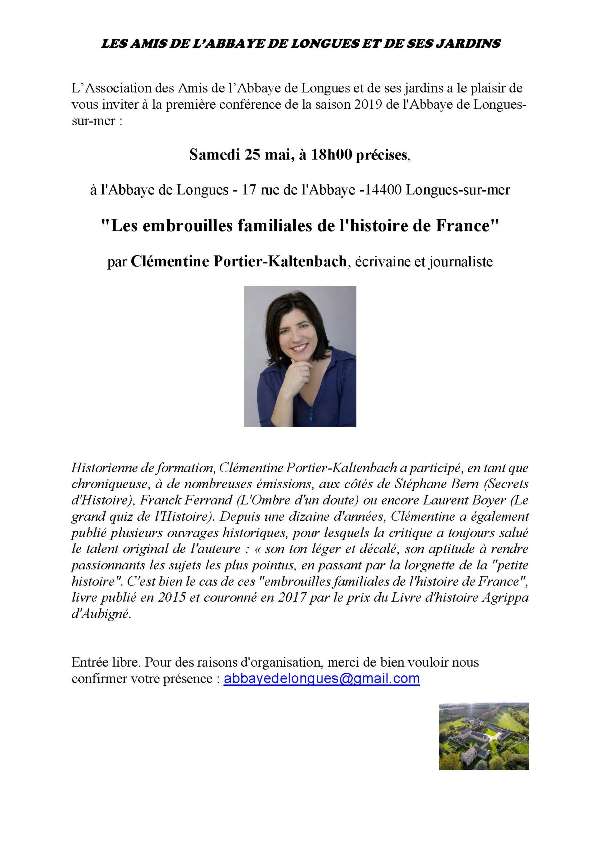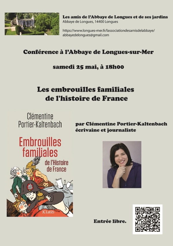 Conférence « LES EMBROUILLES FAMILIALES DE L’HISTOIRE DE FRANCE » par Clémentine Portier-Kaltenbach auteure de ce livre et qui, de plus, est une formidable conteuse et a beaucoup de talent !