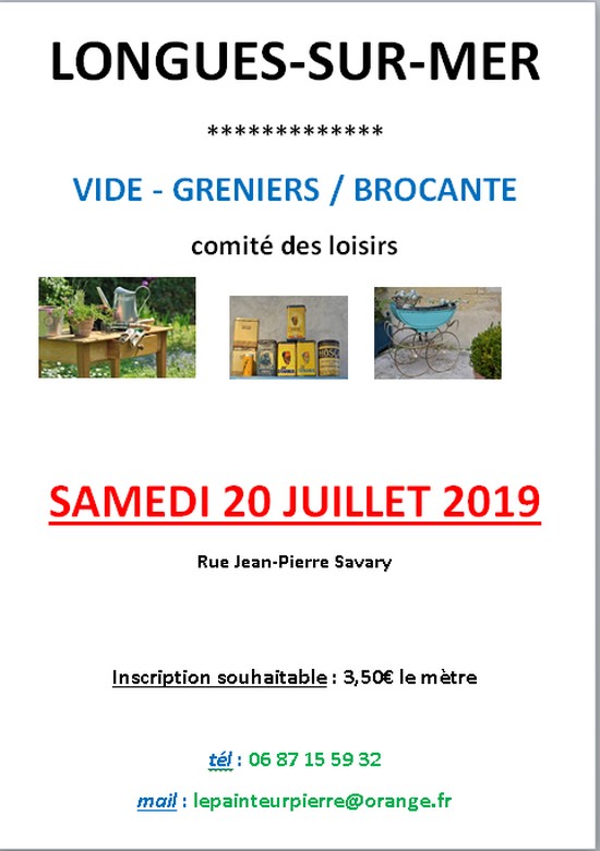 Le Comité des Loisirs de Longues sur Mer organise sa BROCANTE / VIDE GRENIERS ANNUELLE