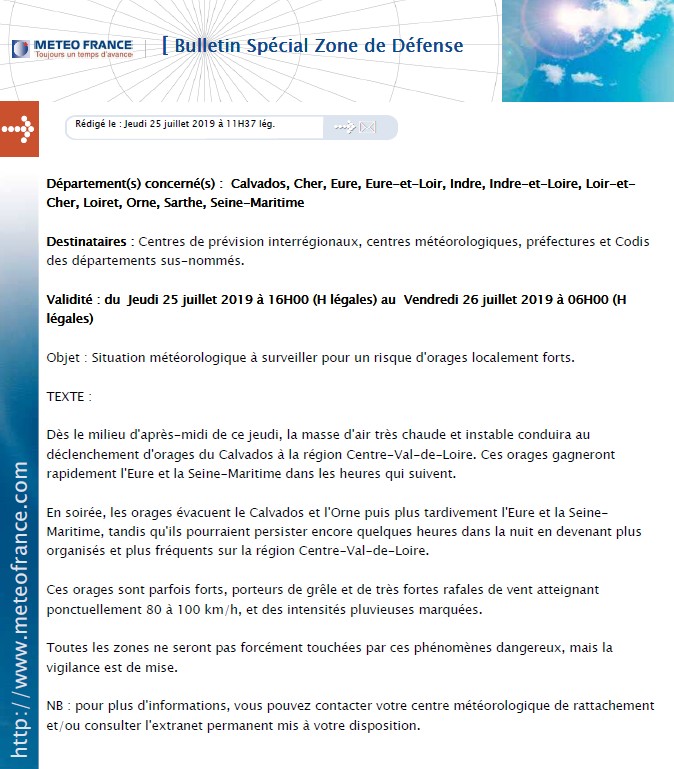 Ci-après, vous trouverez la copie du bulletin météo.