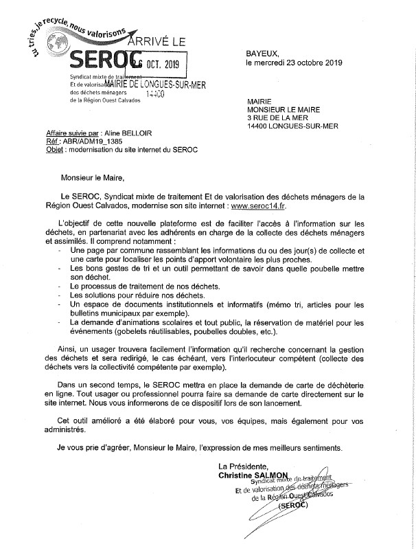 La mairie de Longues sur Mer vous communique la lettre d’information du SEROC qui modernise son site internet : www.seroc14.fr