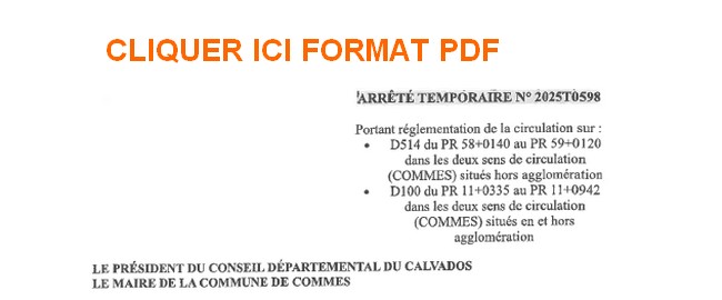 Vous trouverez ci-après l’arrêté temporaire de circulation qui concerne la fermeture de la RD514 à COMMES du 27/10 au 14/11/2025.