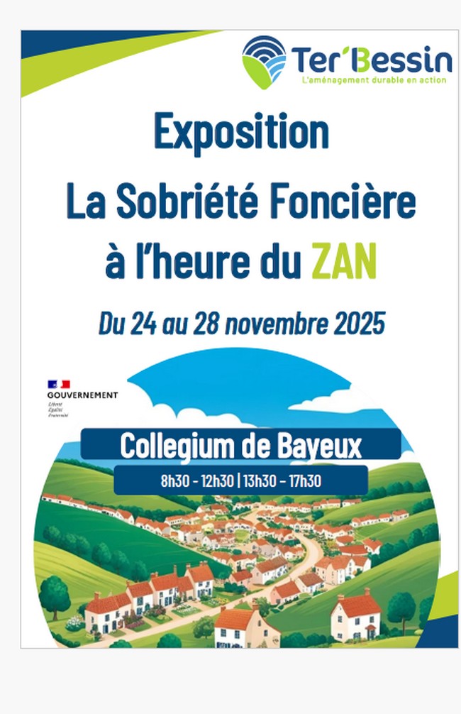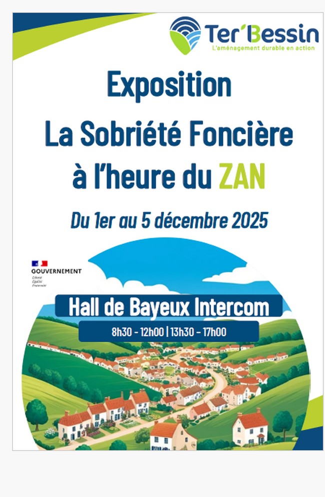 En partenariat avec la DDTM, Ter’ Bessin met en lumière une exposition sur la sobriété foncière à l’heure du ZAN portée par les ministères chargés de l’Aménagement des Territoires et de la Transition Écologique. Elle a pour ambition d’accompagner les acteurs locaux dans la mise en œuvre de la sobriété foncière et de la transition écologique sur le territoire. Elle aura lieu :